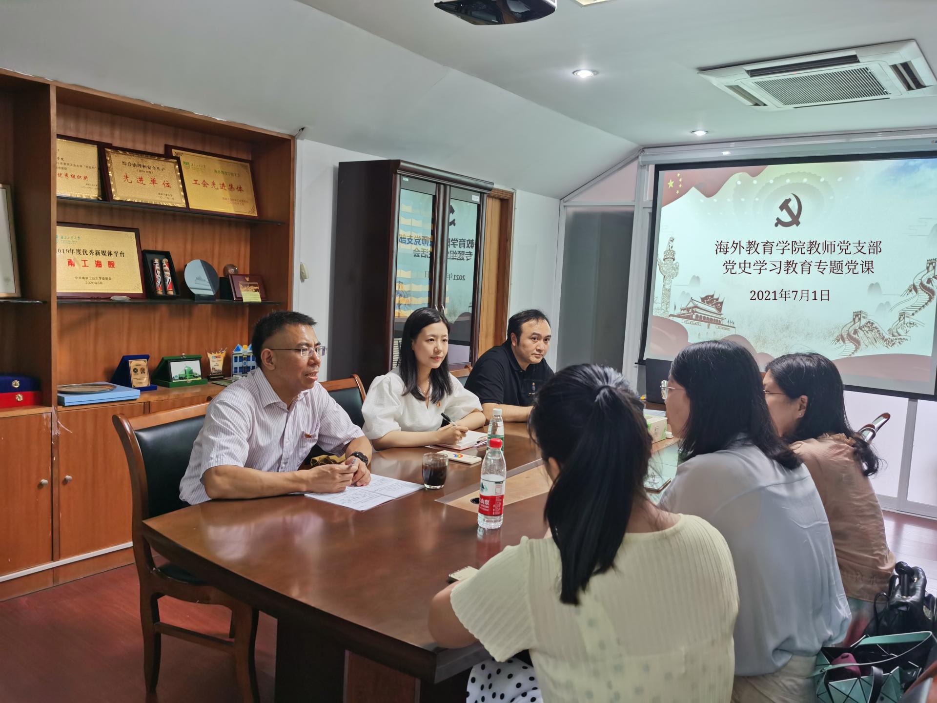 7月1日,779cn太阳集团教师党支部在明远楼301会议室开展党史学习教育专题党课活动,支部全体党员和公司党委书记万永敏参加了本次活动。