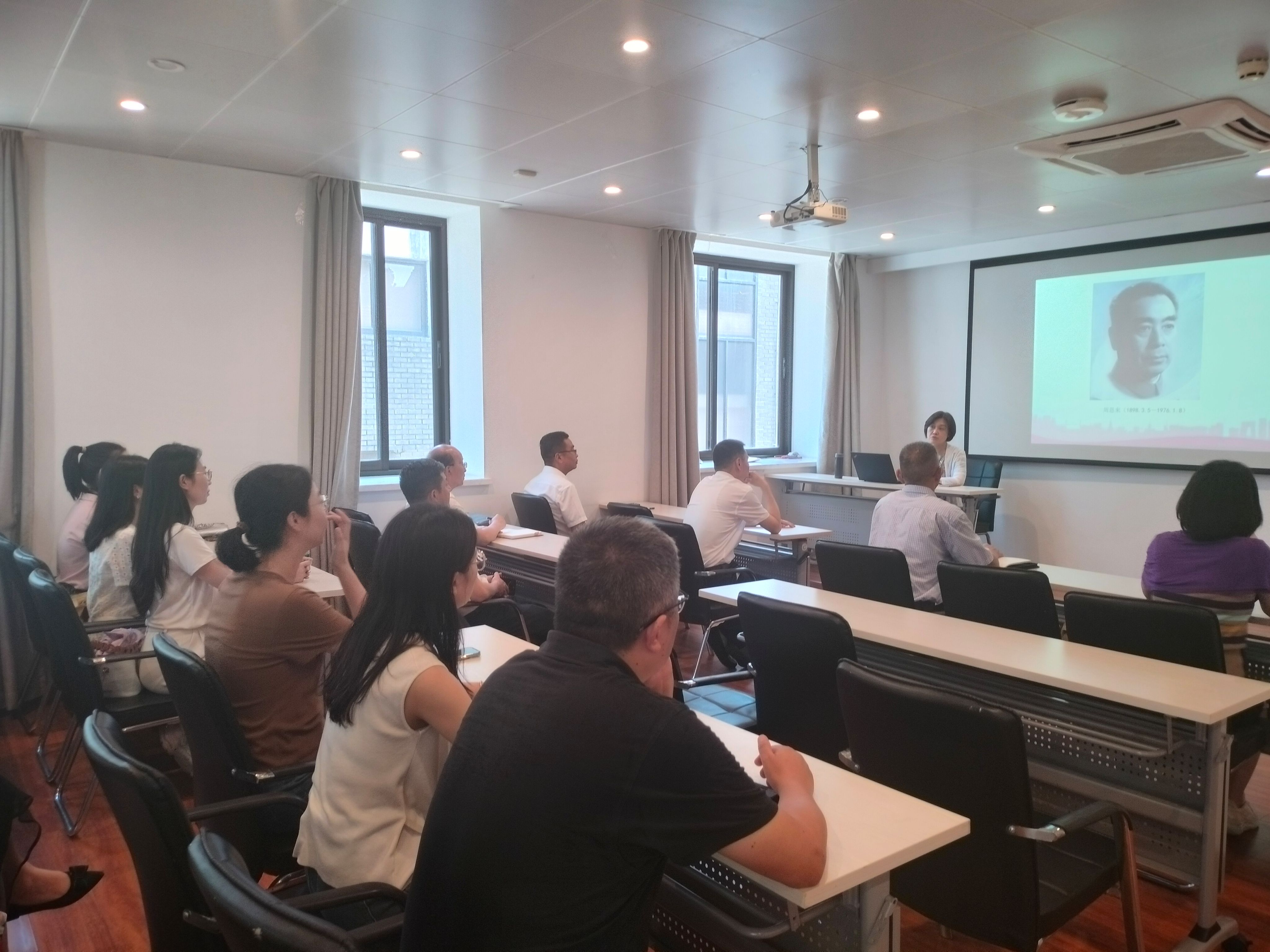 参观结束后,全体党员在周恩来图书馆参加了“以周恩来为榜样·学习贯彻中央八项规定精神”为主题的微党课。习总书记指出,周恩来同志是中国共产党人的一面不朽旗帜,是中国共产党不忘初心、牢记使命历史的一个生动缩影,是新中国孕育、诞生、成长和取得崇高国际威望历史的一个生动缩影,是中国人民在自己选择的革命和建设道路上艰辛探索、不断开拓、凯歌行进历史的一个生动缩影,是不忘初心、坚守信仰的杰出楷模,是对党忠诚、维护大局的杰出楷模,是热爱人民、勤政为民的杰出楷模,是自我革命、永远奋斗的杰出楷模,是勇于担当、鞠躬尽瘁的杰出楷模,是严于律己、清正廉洁的杰出楷模纪念馆老师声情并茂的讲解中,大家通过典型事例加深了对周恩来总理“一面旗帜三个缩影六个楷模”的理解。