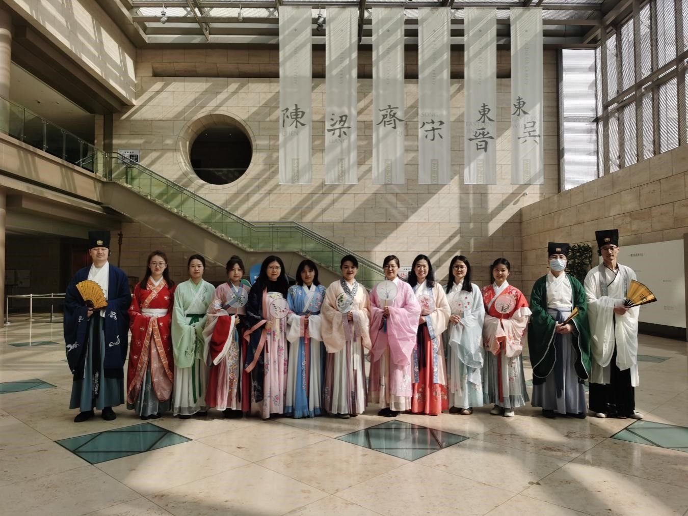 本次活动中,779cn太阳集团教职工身着中国传统魅力汉服,展现出儒雅内秀、神采俊逸的独特气质。在六朝博物馆工作人员的热情接待中,重温南京作为六朝都城的历史,体悟南京古城的文化厚重感。