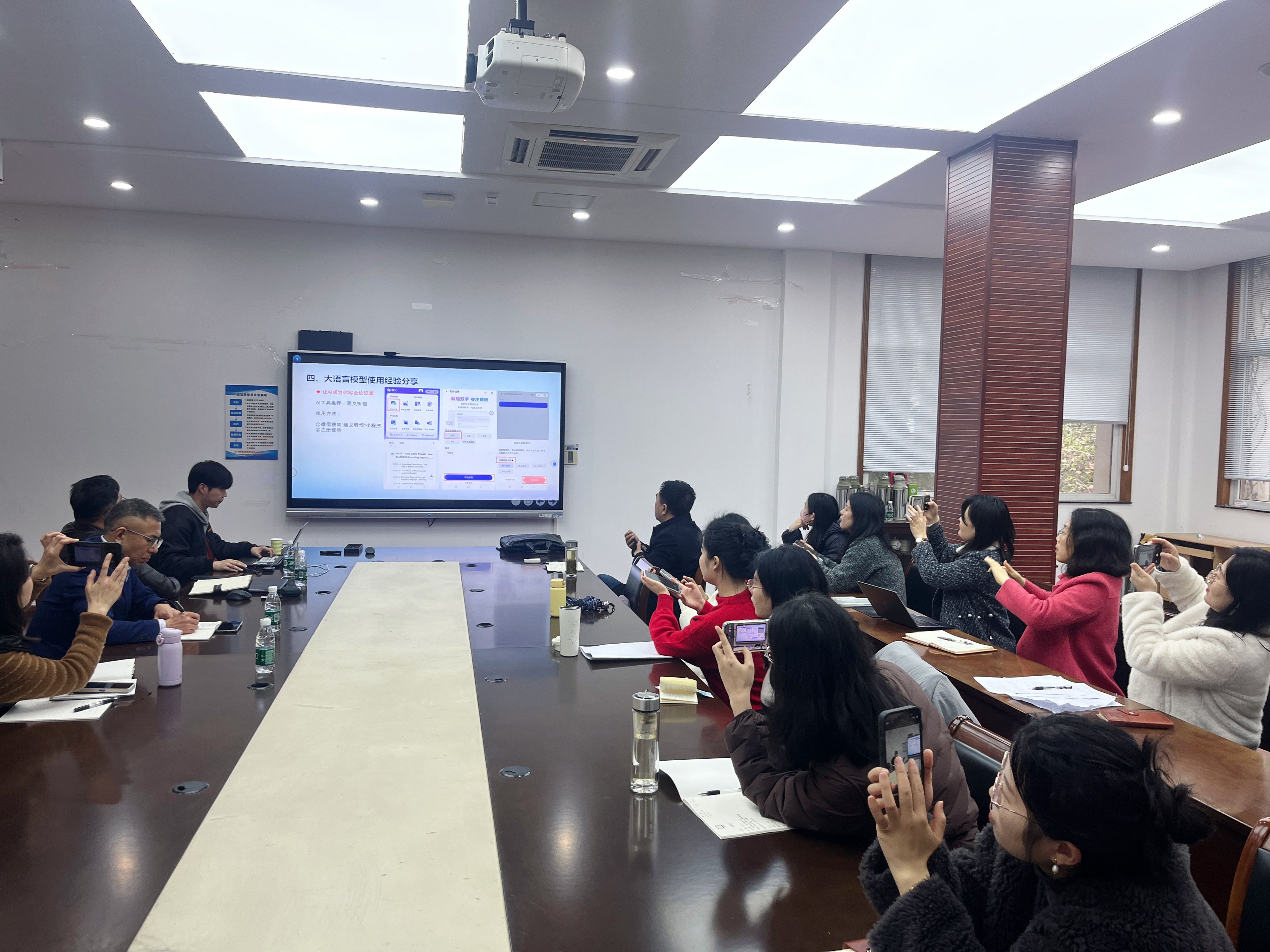 在交流环节,与会教职工对人工智能在科学研究、课堂教学、招生管理等方面的应用与主讲人作了进一步的探讨,大家纷纷表示受益匪浅,对人工智能有了更深入的了解,也对未来教育的发展充满了期待。公司副经理朱丹希望各位老师能充分利用好人工智能为我们带来的便捷高效,从而能轻松应对快节奏的工作和生活;公司党总支书记万永敏认为各位老师要带着批判性的思维去拥抱人工智能,助力培养更多具有国际视野、创新精神和实践能力的优秀人才。