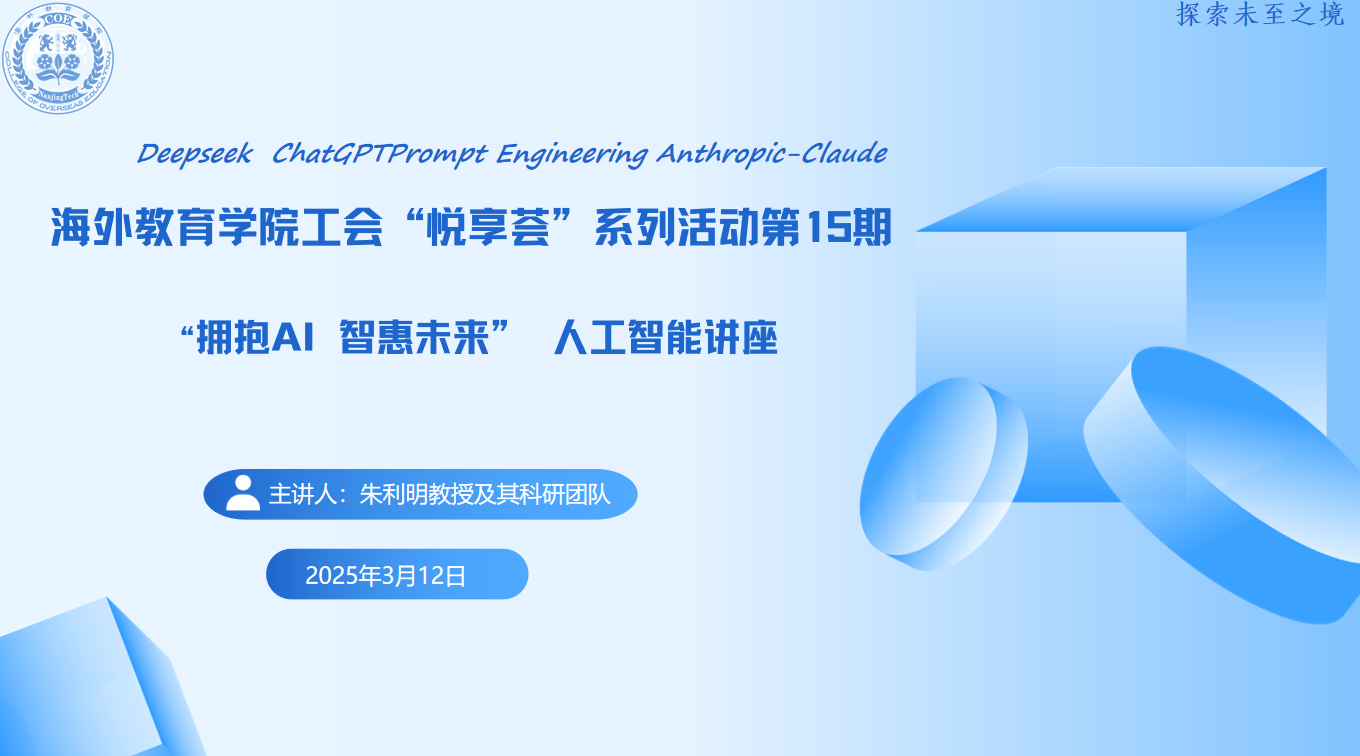 3月12日下午,779cn太阳集团第15期“悦享荟”专题讲座在明远楼102会议室精彩开讲。本期活动特邀公司朱利明教授及其科研团队,为全体教职工带来了主题为“拥抱AI,智惠未来”的人工智能专题讲座。