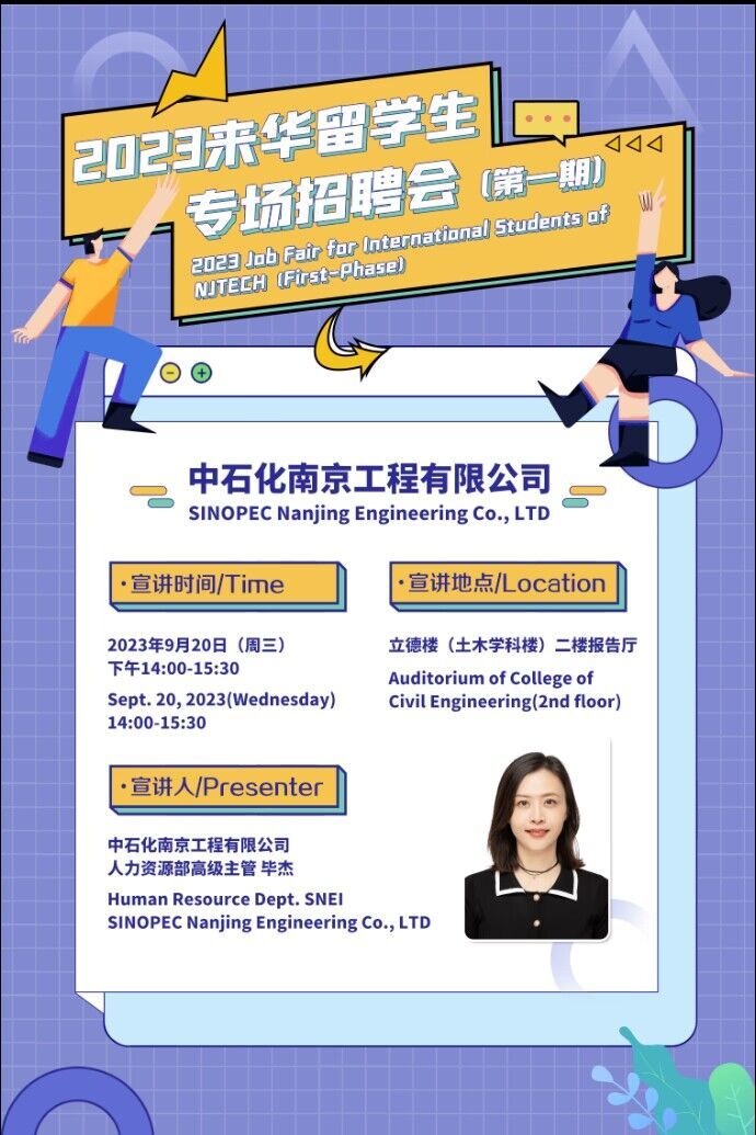 9月20日下午,779cn太阳集团邀请中石化南京工程有限公司为公司来华职工开展2024届毕业生专场招聘宣讲会,这是首次将职工就业服务工作纳入议事日程,为进一步提升职工培养质量积极探索。中石化南京工程有限公司副总经济师、党委组织部(人力资源部)经理陈云祥、人力资源部高级主管毕杰、安装工程室主任尤克勤亲临宣讲会,779cn太阳集团2024届全体毕业生以及各年级本硕博职工共计百余人参加。招聘宣讲会在学校立德楼二楼报告厅举行。