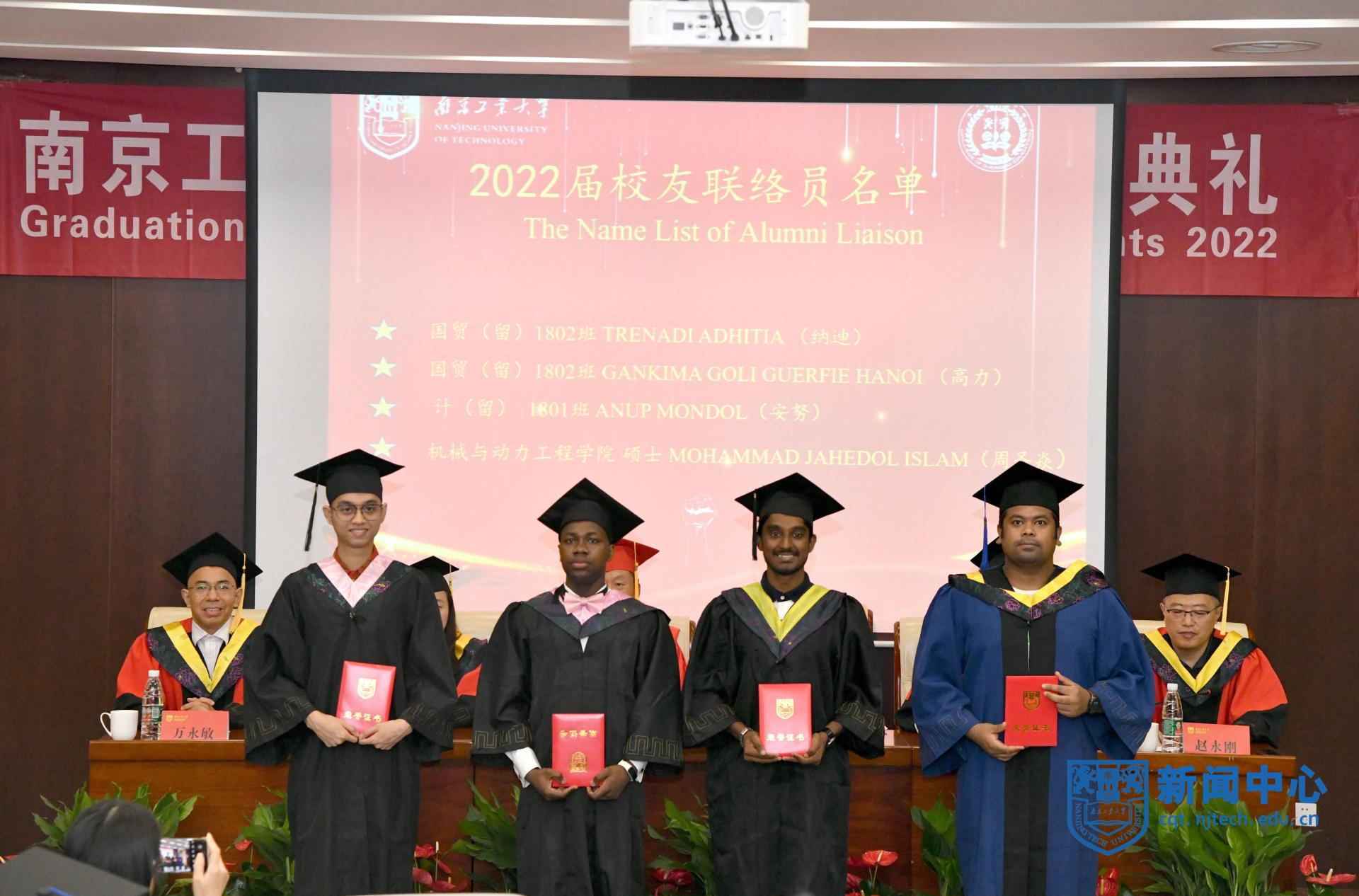 本科毕业生代表高力(刚果(布)籍)、许忆美(印度尼西亚籍)、硕士毕业生代表金斯利(尼日利亚籍)分别发言,真诚感恩在南工大度过的青葱岁月,积极表态会做好母校的优秀毕业生,努力成为779cn太阳集团在世界舞台上的宣传大使。会后,2022届毕业职工与参会老师集体合影留念。
