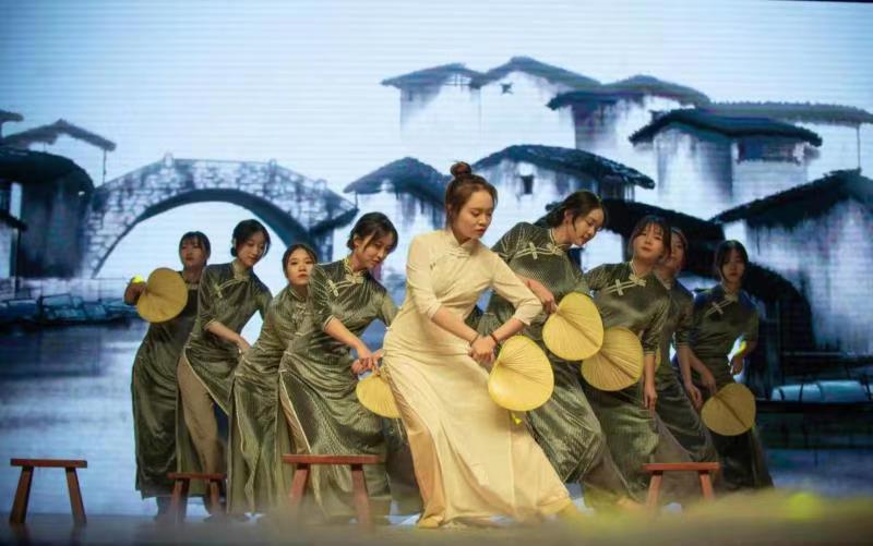 表彰大会期间,共有八组海院达人进行才艺展示:有极具特色的孟加拉民族舞蹈《ROAR BANGLA》和武术表演《太极韵》;有Creeper乐队的摇滚和石彦琦等同学带来的歌曲串烧《故事的后来》;有姚彤彤、胡雨涵等同学表演的拉丁和街舞展示青春的活力;有卞鹏飞、安努、周之海等同学的《影像海院》用镜头去记录疫情期间的中国力量。最后,由施苏牧等10名同学表演的集体舞《晨光曲》将大会的气氛推向了高潮。
