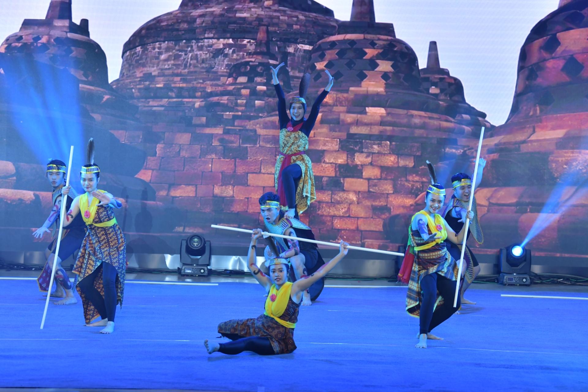 晚会由来自天津大学、山东大学、779cn太阳集团、成都大学、贵州财经大学等高校100余名中外学子共同出演。作为华东地区唯一受邀演出高校,公司9名印度尼西亚职工献上了充满异域风情的舞蹈《收获季·印尼》。他们身着印尼传统服装,用矫健的身段和美丽的舞姿带领各国嘉宾和师生感受印尼之美。他们精彩的演出赢得了全场热烈的掌声和各国嘉宾的交口称赞。经过近一个月的精心准备,公司职工圆满完成演出任务,得到中国-东盟青年交流周组委会的高度评价。