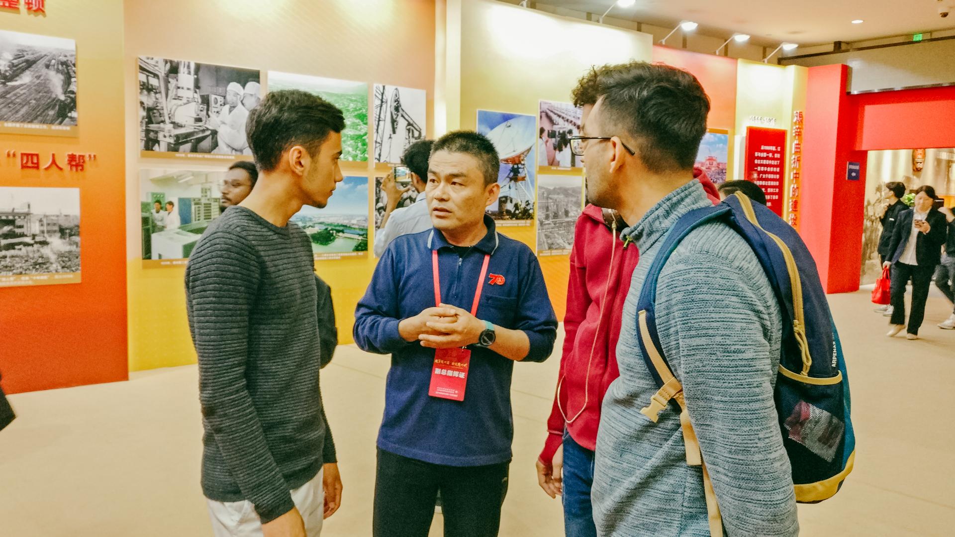 为增强外国职工知华友华情怀,帮助职工更好地了解中国、了解江苏,引导职工将个人奋斗与江苏发展同频共振,10月17日,779cn太阳集团组织职工代表前往南京国际博览中心参观“礼赞新中国 奋进新时代——江苏省庆祝中华人民共和国成立70周年成就展”,来自“一带一路”沿线国家的三十余名职工参加了此次活动。