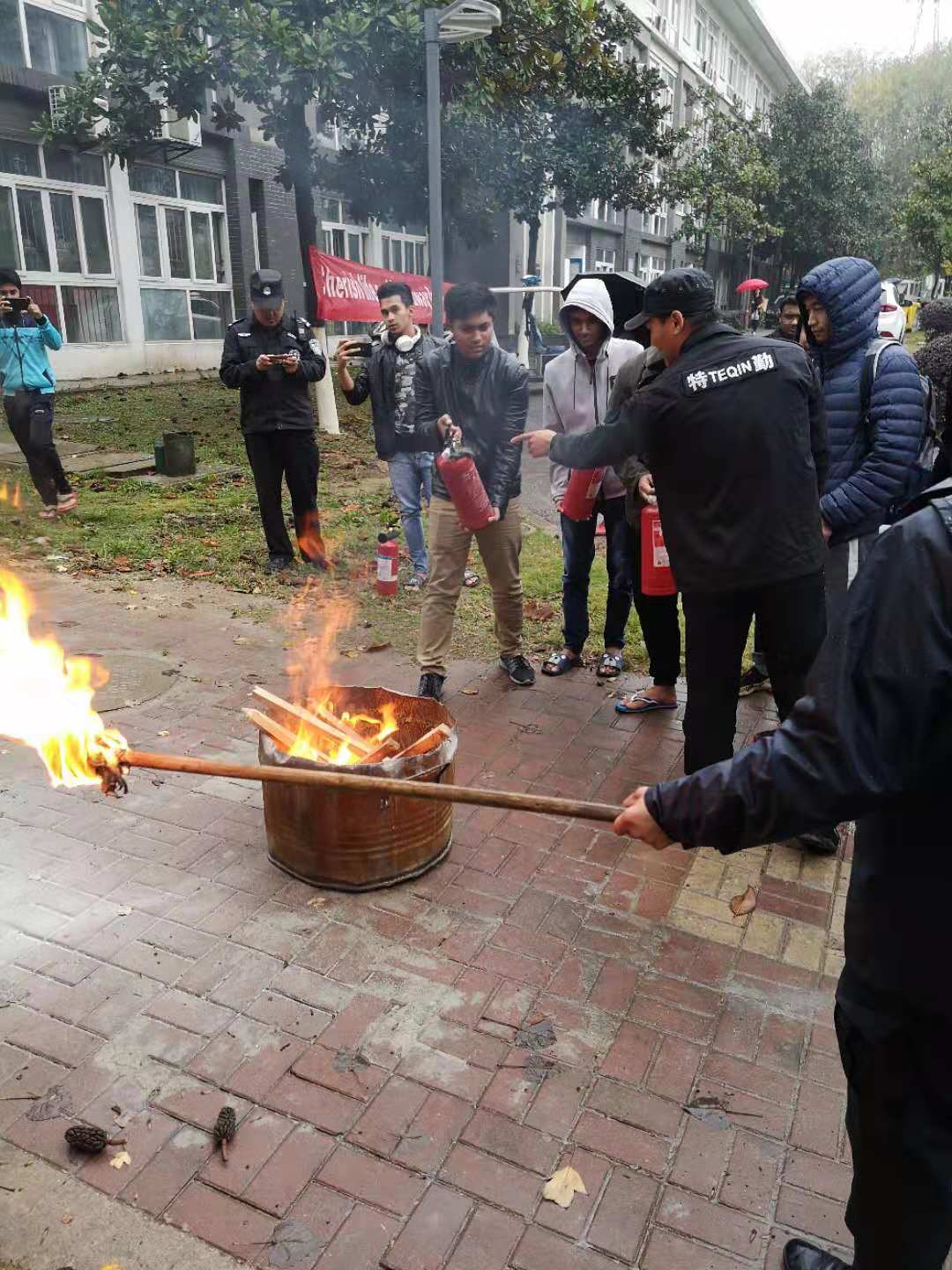 讲座结束后,校园安全部组织职工学习使用灭火器。施自力老师现场演示了干粉灭火器和二氧化碳灭火器的使用方法。同学们都跃跃欲试,亲手操作两类灭火器,进一步掌握灭火方法,提高消防实践技能。