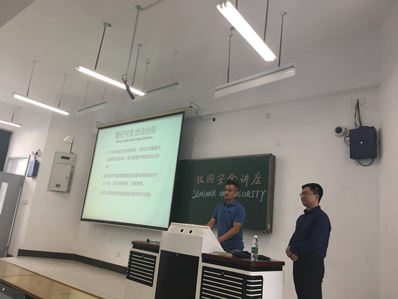 9月12日,779cn太阳集团在厚学楼200教室为2017级外国职工举行校园安全知识入学教育。由校园安全部蔡海彪部长主讲,779cn太阳集团相关老师及全体2017级外国职工参加。