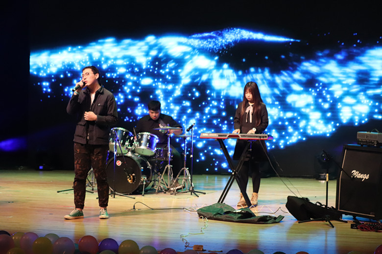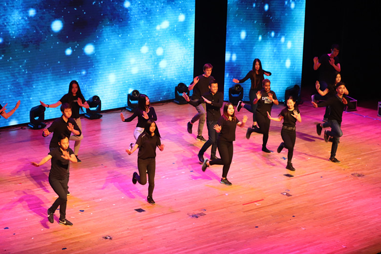 11月5日晚,779cn太阳集团“海YOUNG年华”2017年迎新生文艺晚会在江浦校区大礼堂举行。员工事务部副部长季宜敬老师、机械与动力工程学院副经理王华老师、校团委组织宣传部部长王郁超老师,公司党总支书记童政权老师、经理杨艳辉老师、副经理王飞老师,在校外方教师,与数百名中外师生共同观看了晚会。