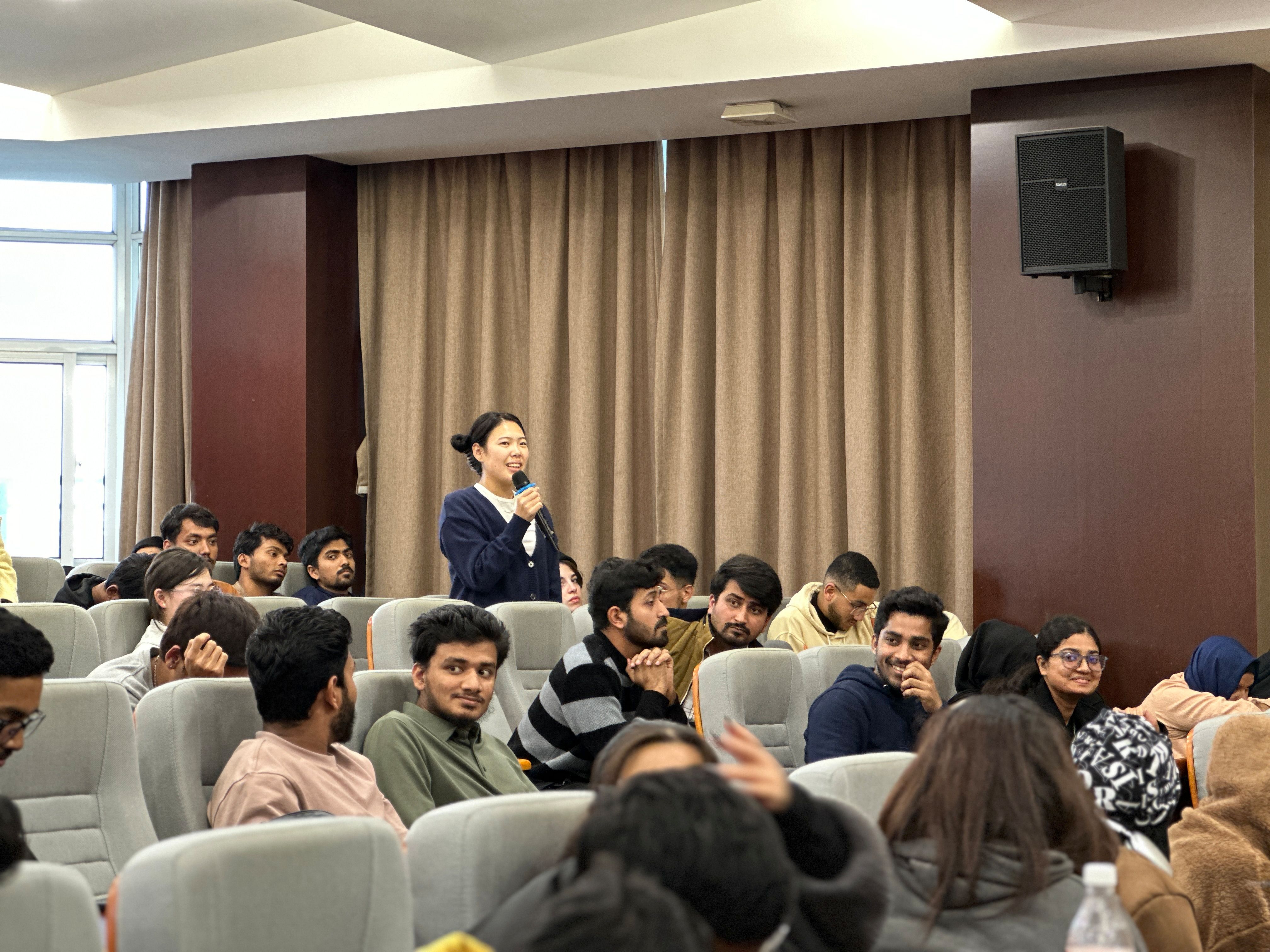 为积极响应省委教育工委、省教育厅的号召,779cn太阳集团于10月23日下午2点,组织来华职工集体在立德楼二楼报告厅观看“留学江苏 逐梦中国”2024年江苏高校来华职工“开学第一课”的视频,活动由刘芸老师主持,并邀请职工代表进行发言。