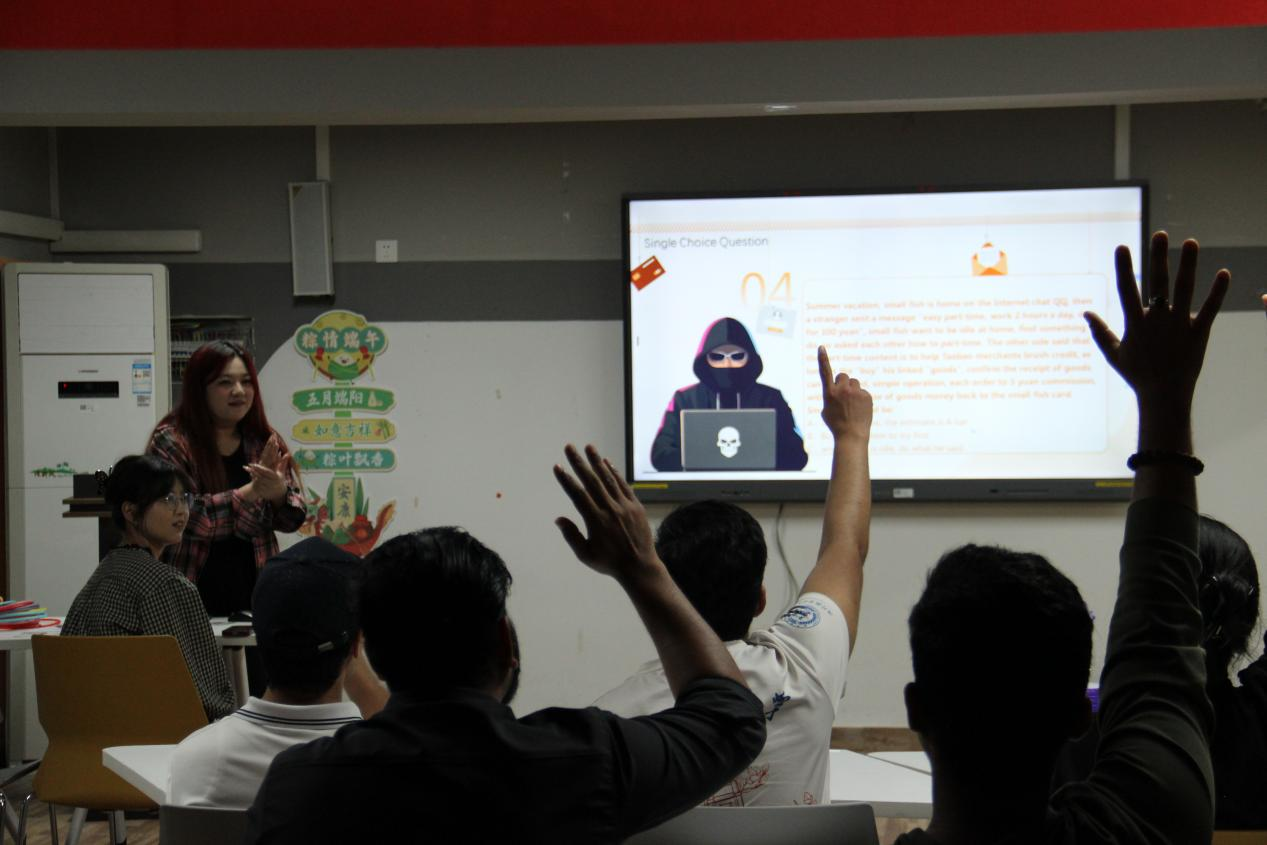 为了增强来华职工的防诈骗意识,并营造一个安全和谐的校园环境,49日下午,779cn太阳集团在明远楼负一楼活动室举办以“玩套圈,防圈套”为主题的反诈骗知识竞赛活动。此次活动吸引了来自印度尼西亚、泰国、孟加拉国和巴基斯坦的近30名职工参加。