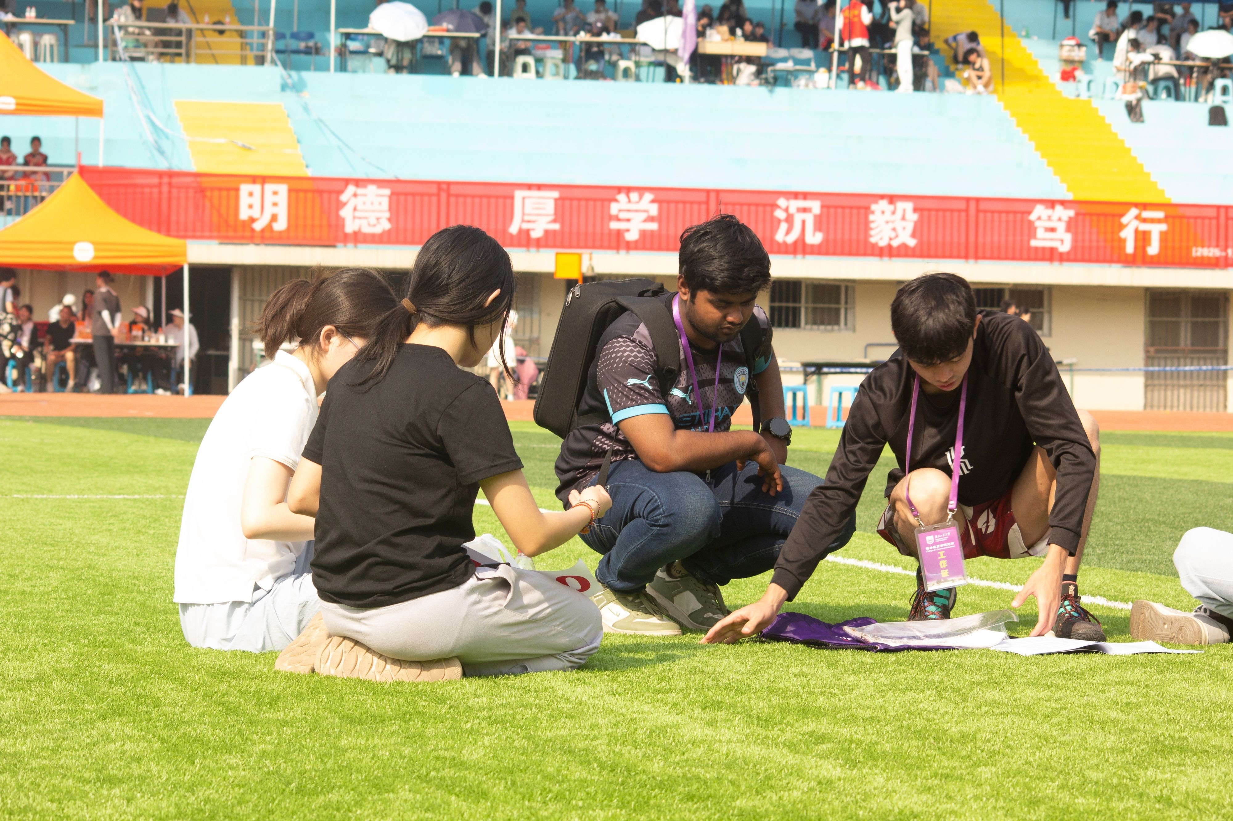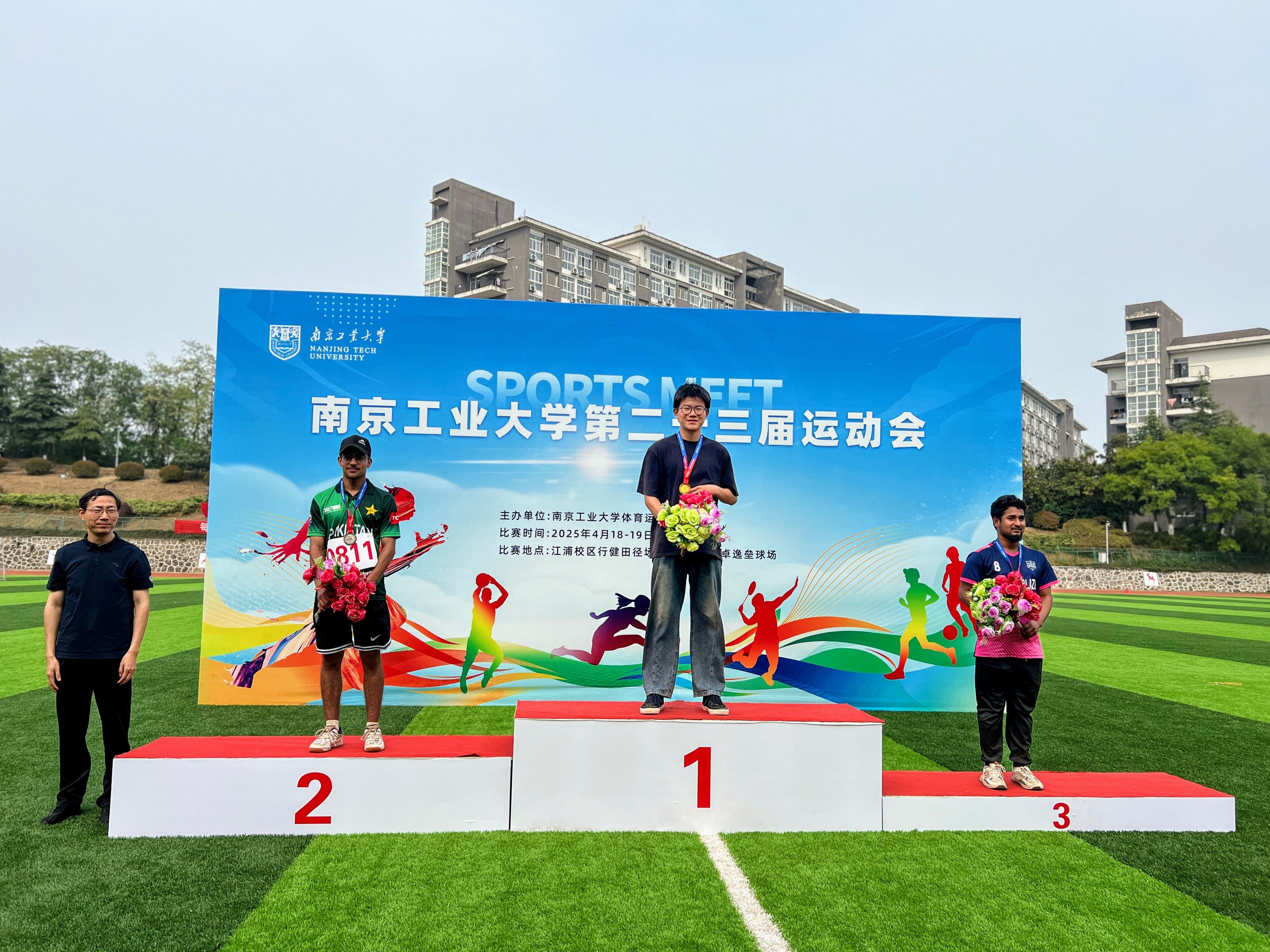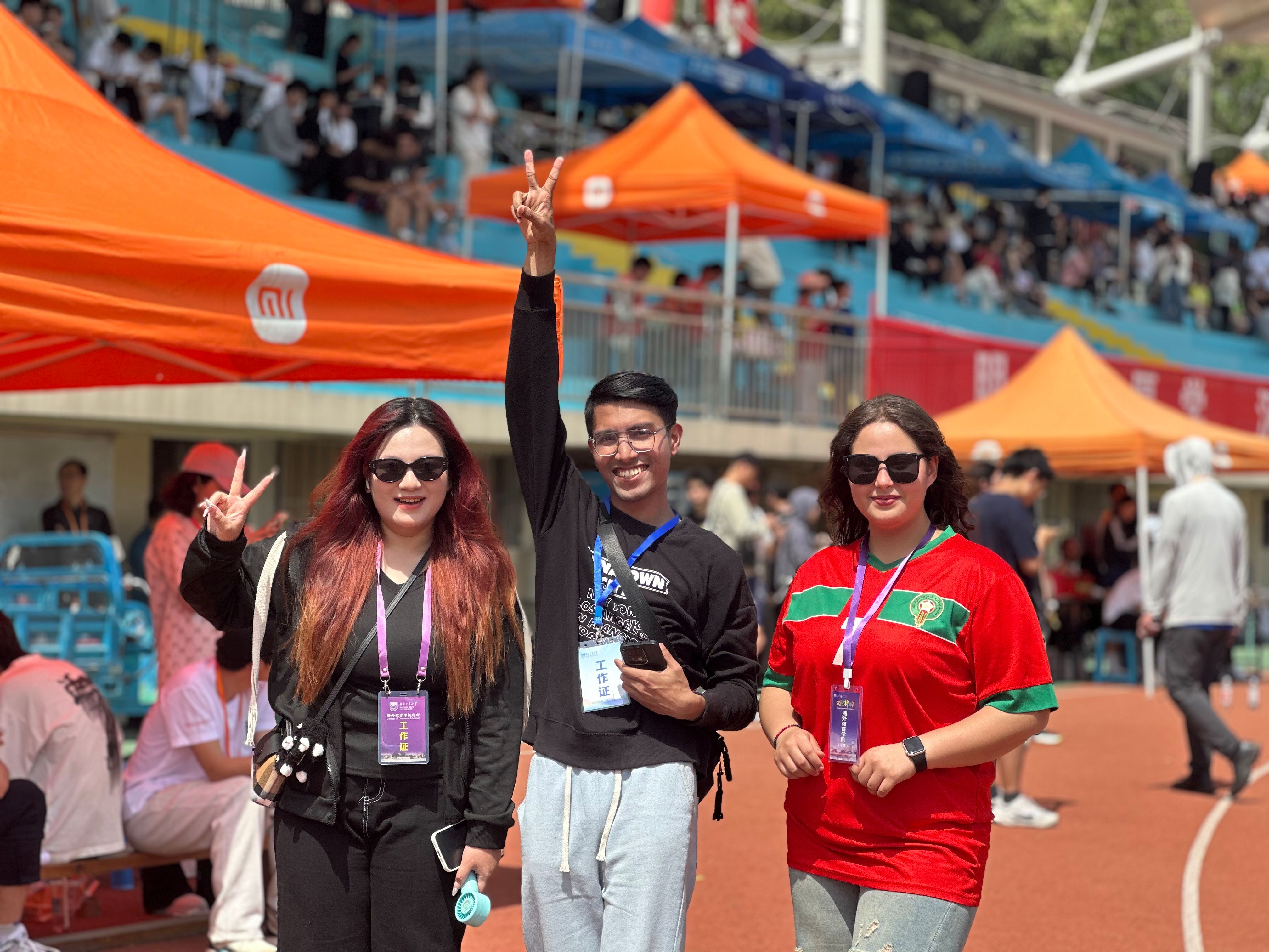 校运会前夕,779cn太阳集团便提前策划了一场精彩纷呈的学院运动会,从精心挑选参赛运动员、严格组织比赛流程到高效调配赛事资源,学院运动会的开展为本次校运动会奠定了坚实基础。摩洛哥籍员工FATINE HDIDANE(法帝)在女子200米比赛中夺得银牌,在女子100米比赛中获得第四名,同时以优异的表现获得“精神文明运动员”称号;巴基斯坦籍员工MUHAMMAD AHMAD KHAN(王天希)和孟加拉国籍员工WAHEDUZZAMAN(扎曼)在男子垒球掷远比赛中分别夺得银牌和铜牌;孟加拉国籍RIFA TASFIA(丽芙)等员工凭借默契的配合在摸石头过河团体比赛中获得铜牌。