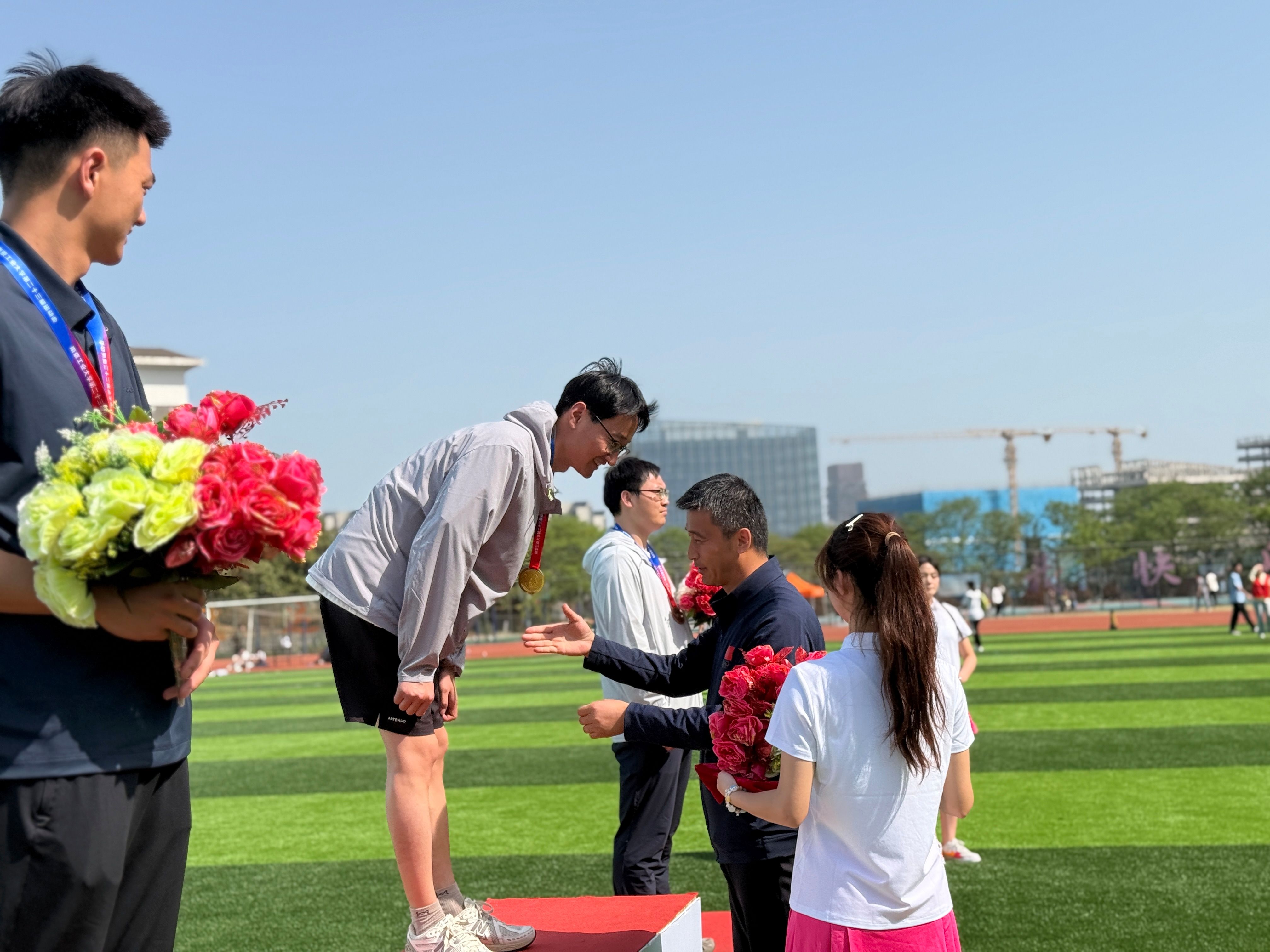 公司师生的顺利参赛离不开职工志愿者的辛苦付出。从运动会前期的准备工作,到赛前彩排的组织协调,再到比赛期间的摄影记录、通知传达等,都能看到他们忙碌的身影。他们的无私奉献和相互配合,不仅确保了学院师生在赛场上的出色发挥,更传递了温暖与关怀,展现了志愿者团队积极向上的精神风貌。