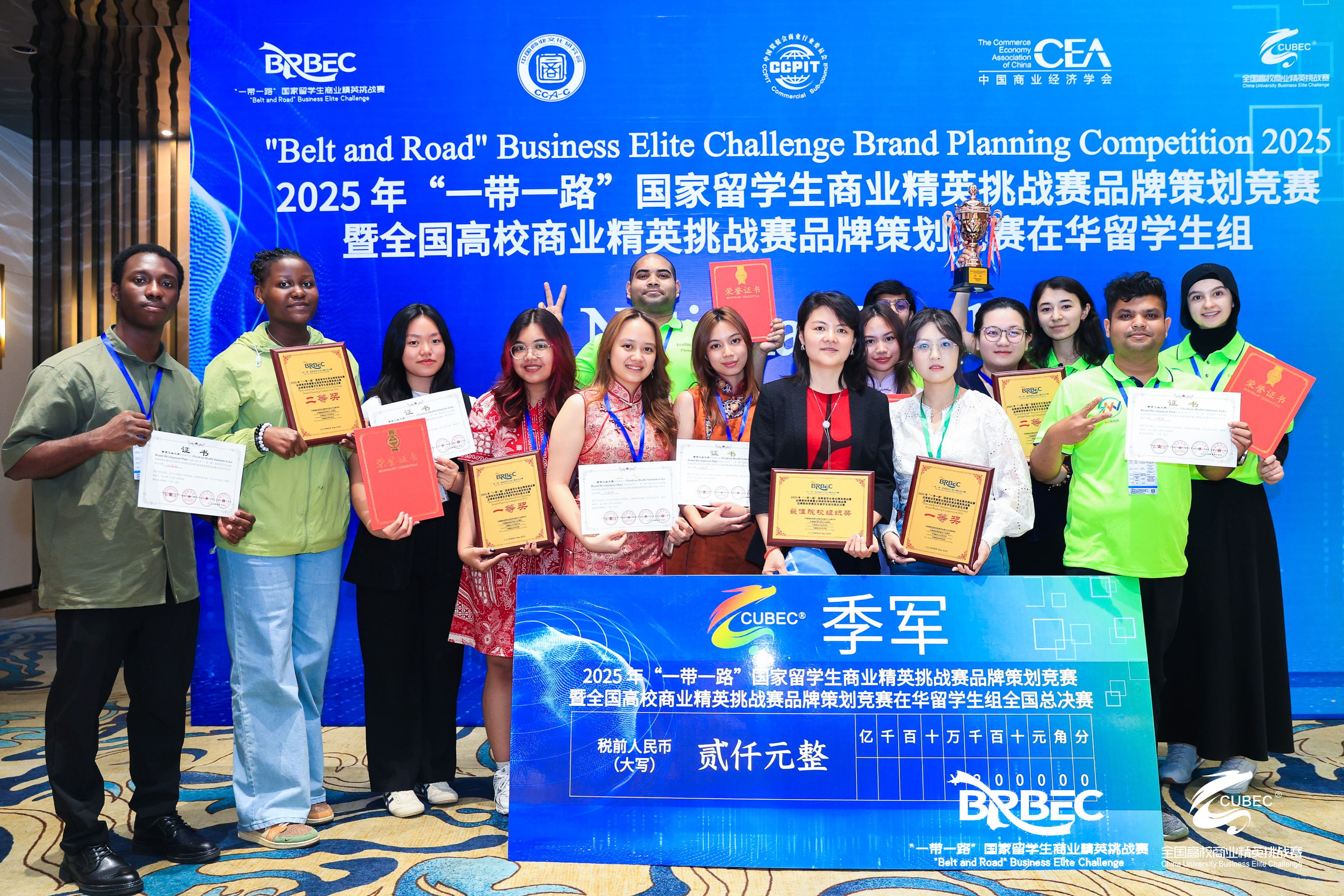 公司4支代表队、20名来自印度尼西亚、南非、多哥、孟加拉国、乌干达、哈萨克斯坦、蒙古、刚果布、马来西亚等国家的来华职工,在779cn太阳集团、经济管理学院教师的指导和企业合作方的支持下,积极备赛,终获佳绩。其中由邢露萍、孙玉玲老师指导的Riding the Future: New Waves Disruptive Entry into Bangladeshs EV Market 》作品同时获得全国季军和一等奖;由孙路,邢露萍老师指导的《Weaving Chinese Elegance: Redefining Qipao for Indonesian Market》作品获得全国一等奖,于勇、朱丹老师指导的NextGen Health Solutions-Leka Brand Development Plan》作品获得全国二等奖,周晓琛、刘芸老师指导的《创意手工美甲-Aouzsta奥狮达品牌策划书》作品获得全国二等奖。