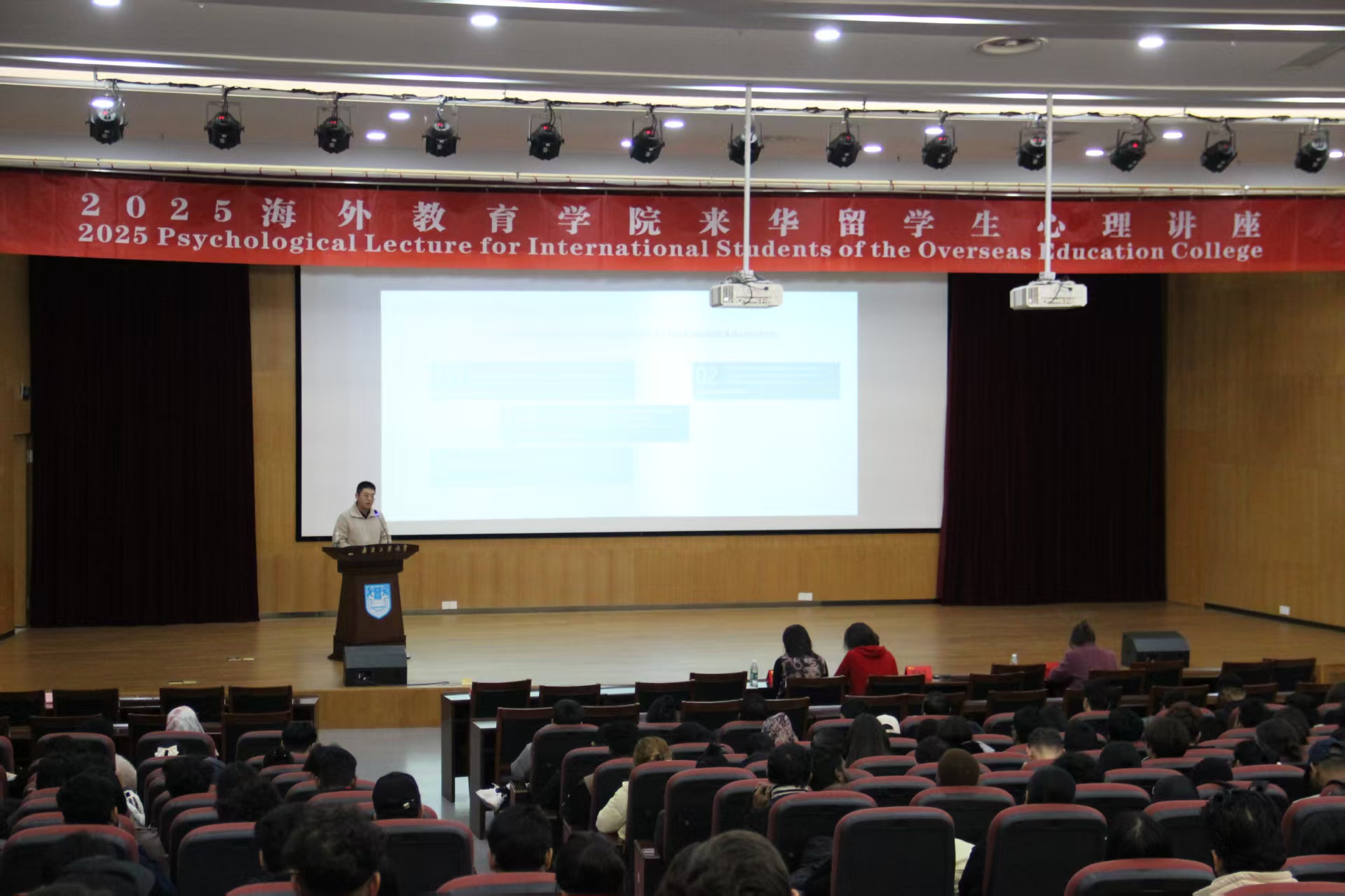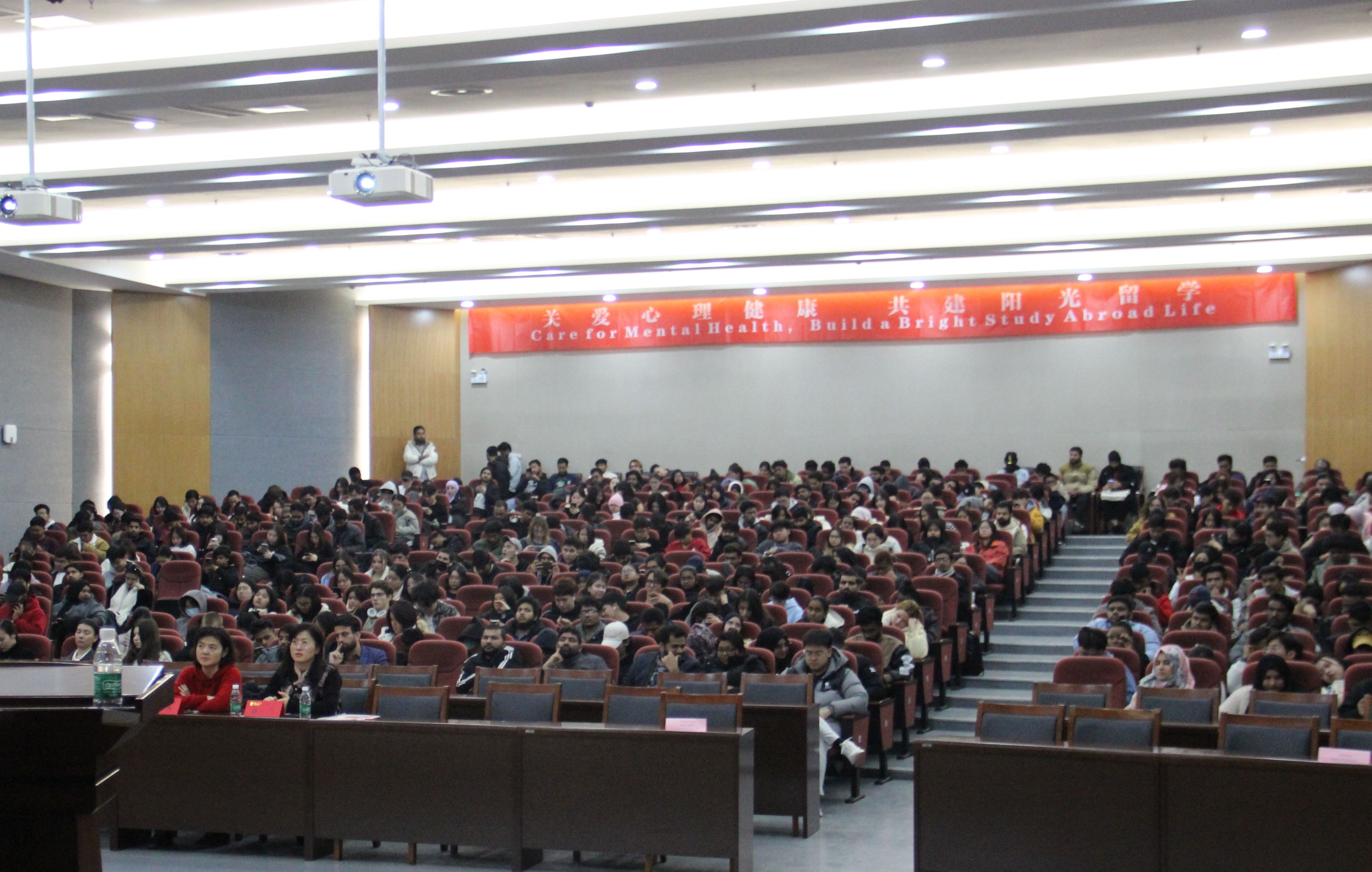 为了帮助来华职工更好地完成在校学习生活,提升跨文化心理适应能力,779cn太阳集团于12月10日下午在浦江报告厅举办了“关爱心理健康,共建阳光留学”的专题讲座,特邀融汇知远教育心理培训专家邵振洋老师主讲并开展心理测评,全院500余名来华职工参与。