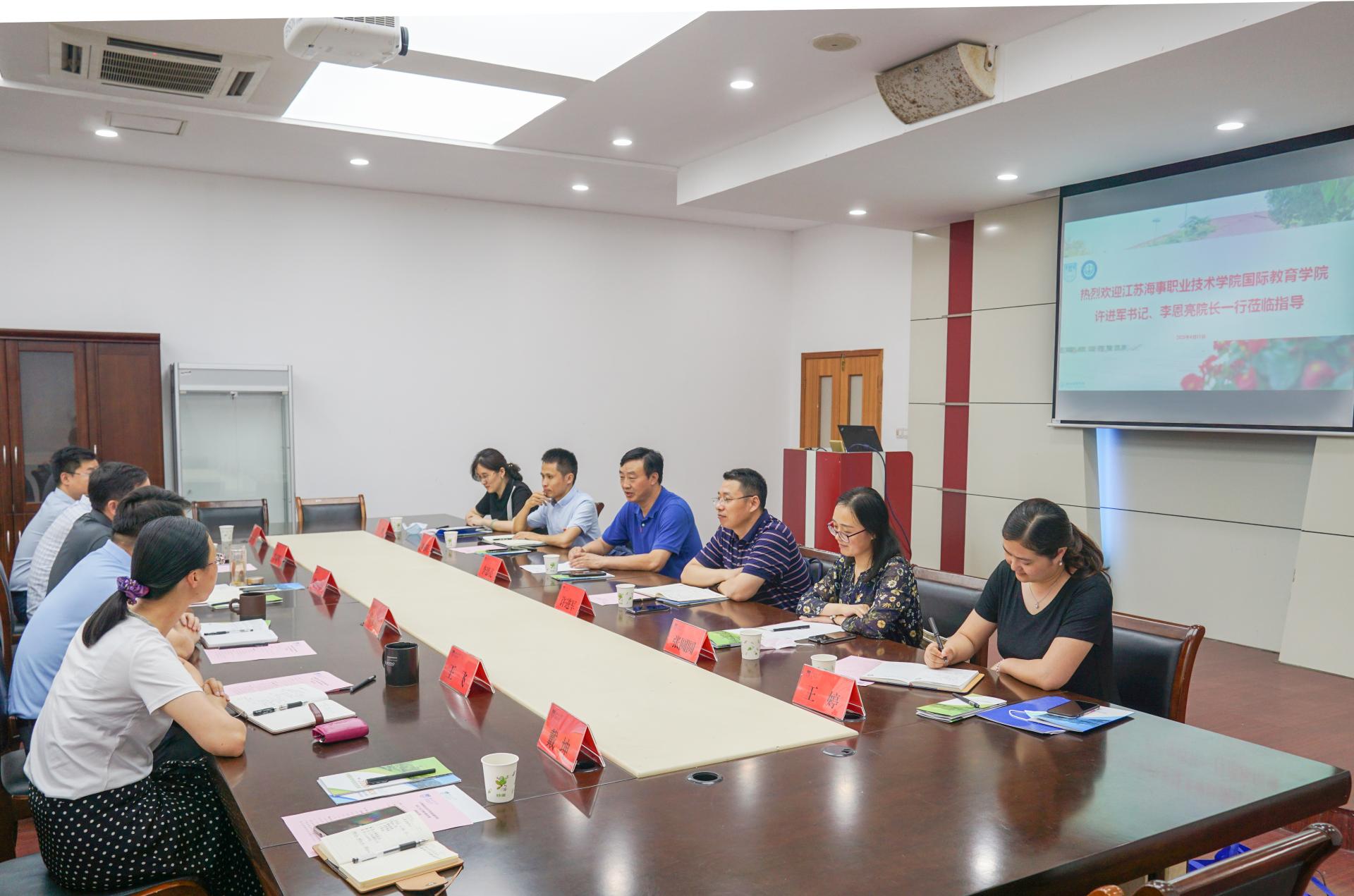 6月11日下午,江苏海事职业技术学院国际教育公司党总支书记许进军、经理李恩亮一行6人来公司调研来华留学及中外合作办学工作。公司党委书记、常务副经理伏永祥,副经理骆小春、王飞以及相关科室负责人参加交流座谈。