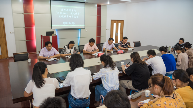 第一、要认真贯彻主题教育总要求,“守初心、担使命,找差距、抓落实”,把主题教育的总要求与学院中外合作办学以及来华职工工作紧密结合起来,做到立德树人守初心、爱国奉献担使命、对照标杆找差距、行胜于言抓落实。
