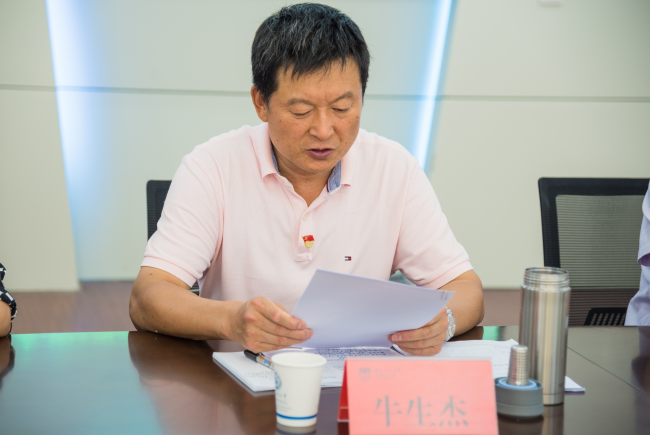 党委常委、副董事长牛生杰同志代表校主题教育领导小组作了讲话。牛副董事长希望779cn太阳集团能够提高政治站位,紧扣主题主线抓好主题教育。在主题教育过程中,要突出重点对象,抓住关键环节,同时注重发挥基层党支部作用,深化主题教育,依托“三会一课”、主题党日等活动,结合“两学一做”学习教育常态化制度化,突出务实管用、生动鲜活、喜闻乐见的方式,增强主题教育的参与度、时代感和吸引力、感染力。同时,要求779cn太阳集团在主题教育过程中,力戒形式主义,紧密结合779cn太阳集团的工作实际,并重点指出记在心里总比写在纸上有效得多。