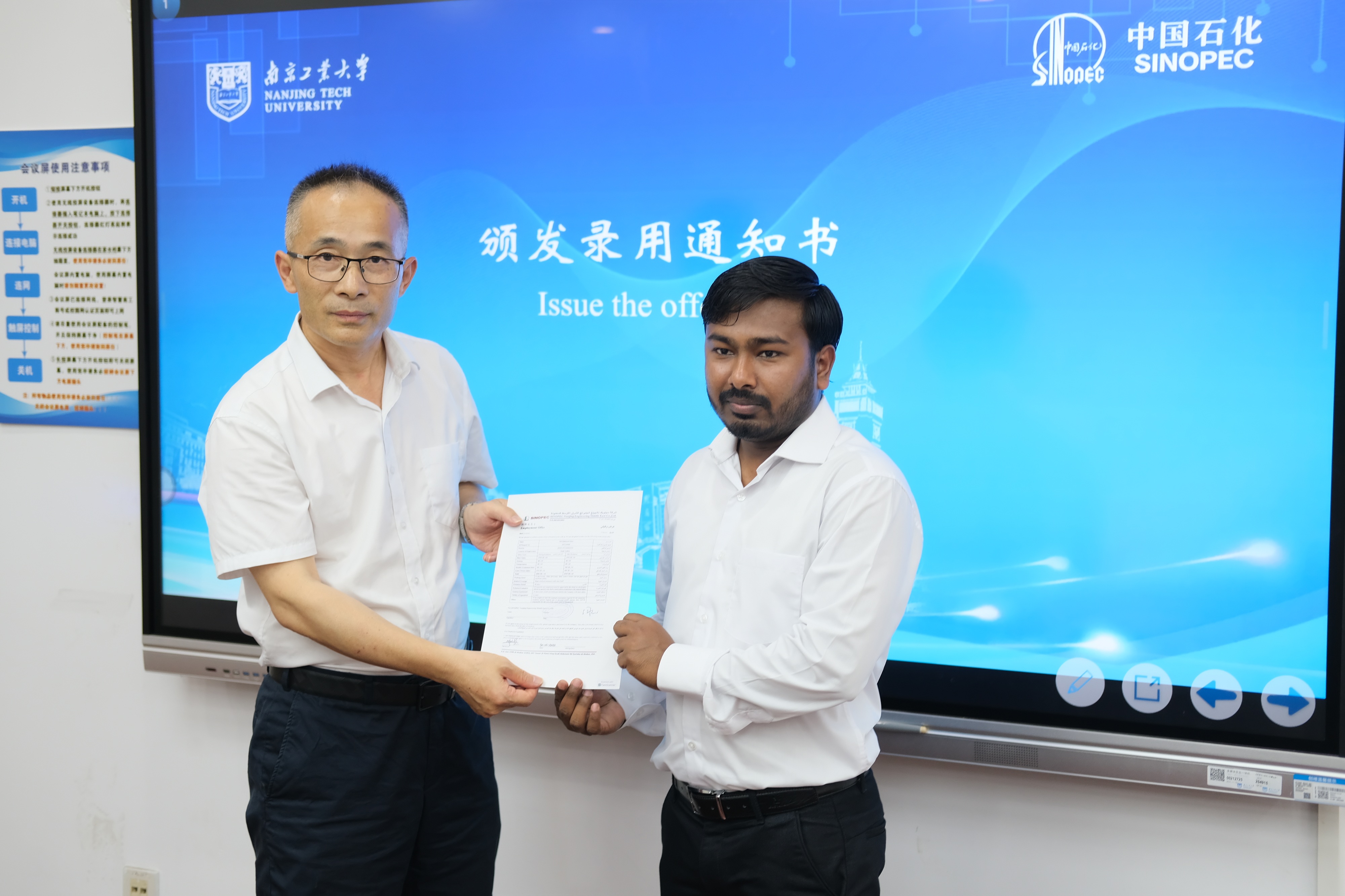 仪式以《旗帜领航 订单成匠:校企党建共建国际化人才》专题视频启幕,双方回顾了2年来党建与人才培养同频共振的丰硕成果。随后,779cn太阳集团党总支书记万永敏系统总结了党建共建引领下订单班的建设成效与发展脉络;国际合作处处长、779cn太阳集团经理佴康宣读了奖学金表彰名单;中石化中东地区业务总监吴少华揭晓了入职职工名单。在热烈掌声中,校企双方共同为订单班学子颁发奖学金证书与录用通知。