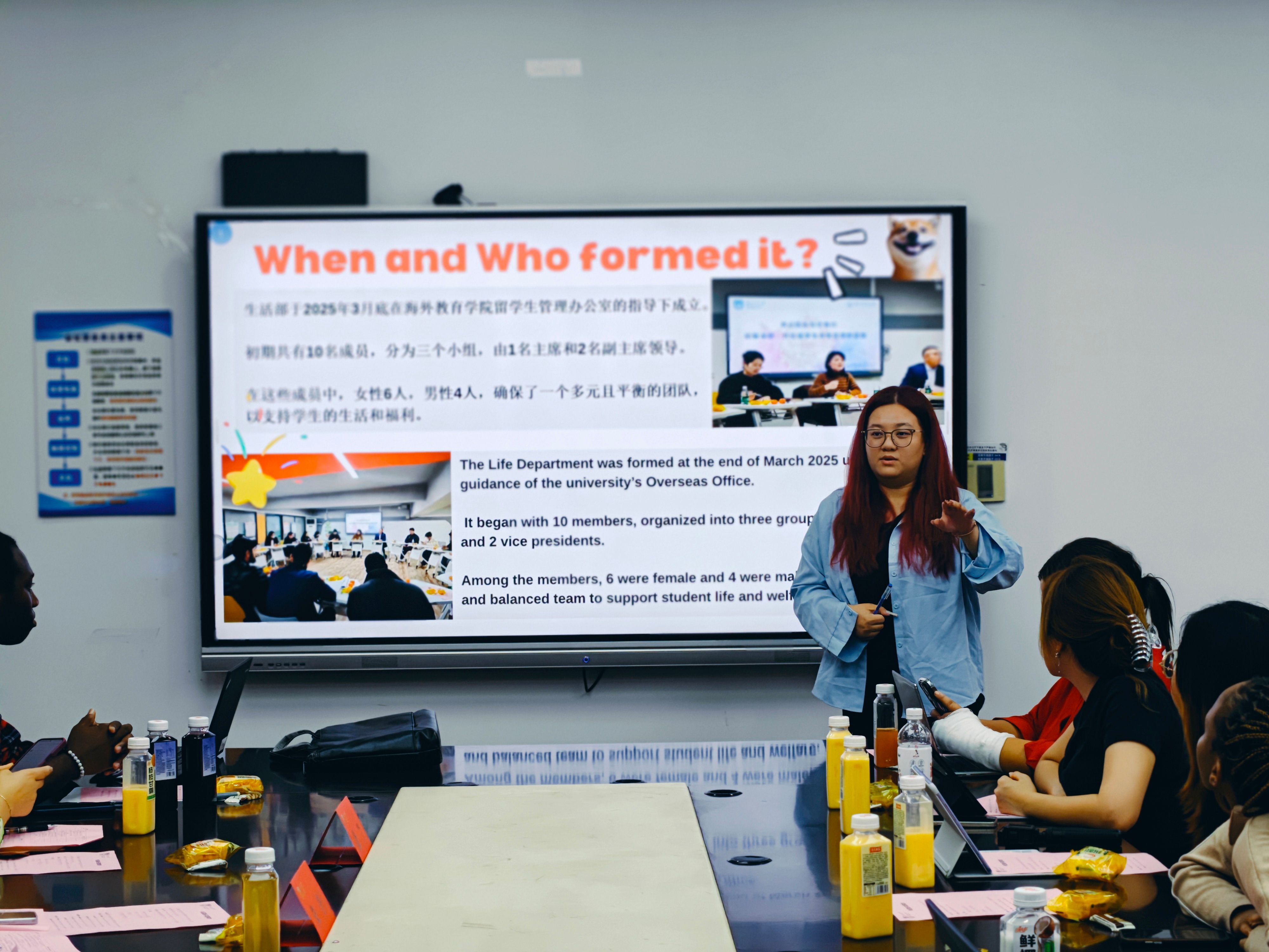 党总支书记万永敏从明确定位、优化部门结构两方面,强调自管会作为“沟通学校与员工的桥梁”和“培养员工干部的阵地”的核心职能,内部结构需综合考虑到国别、性别、学历层次等方面,全体成员要牢固树立自我服务意识,通过公平、公正、公开的工作方式,发挥模范引领作用;同时,要求各部门要将心理关怀融入日常活动与交流中。他寄语同学们继续当好中外友谊的桥梁,为“一带一路”人文交流贡献青春力量,学院将持续完善支持机制,为职工成长成才保驾护航。