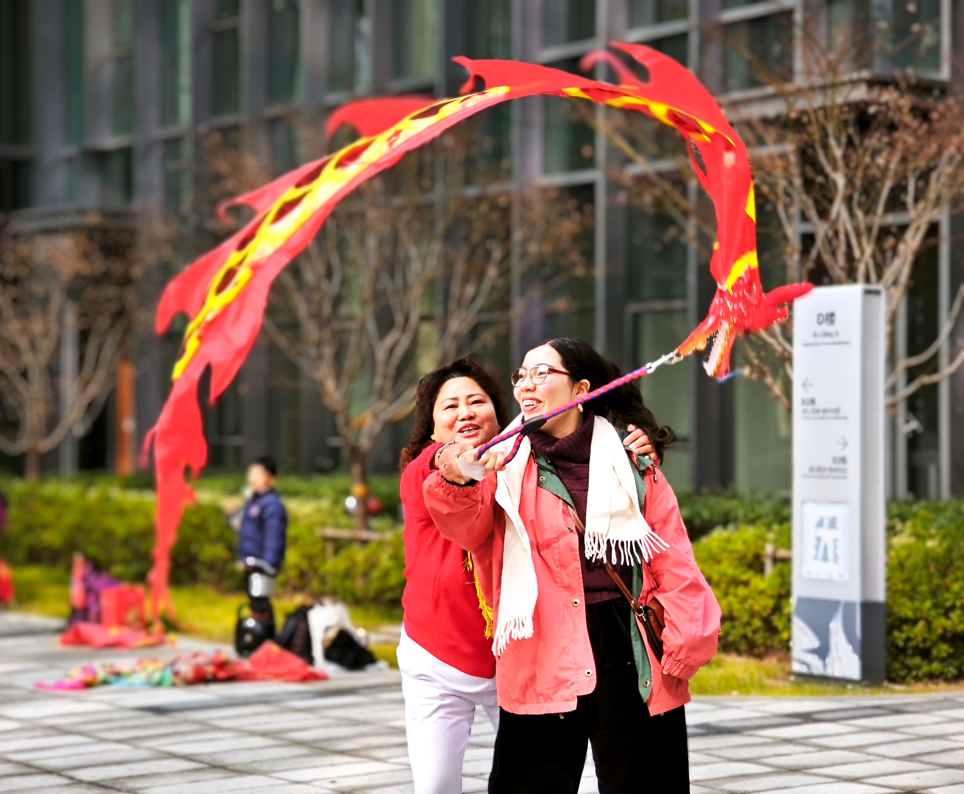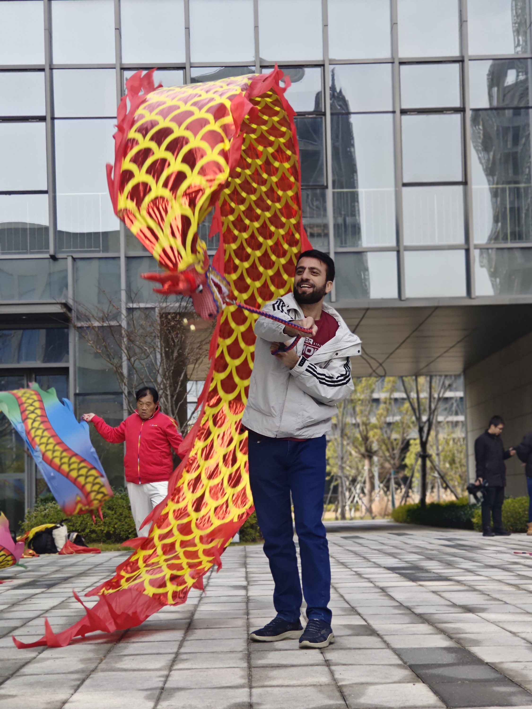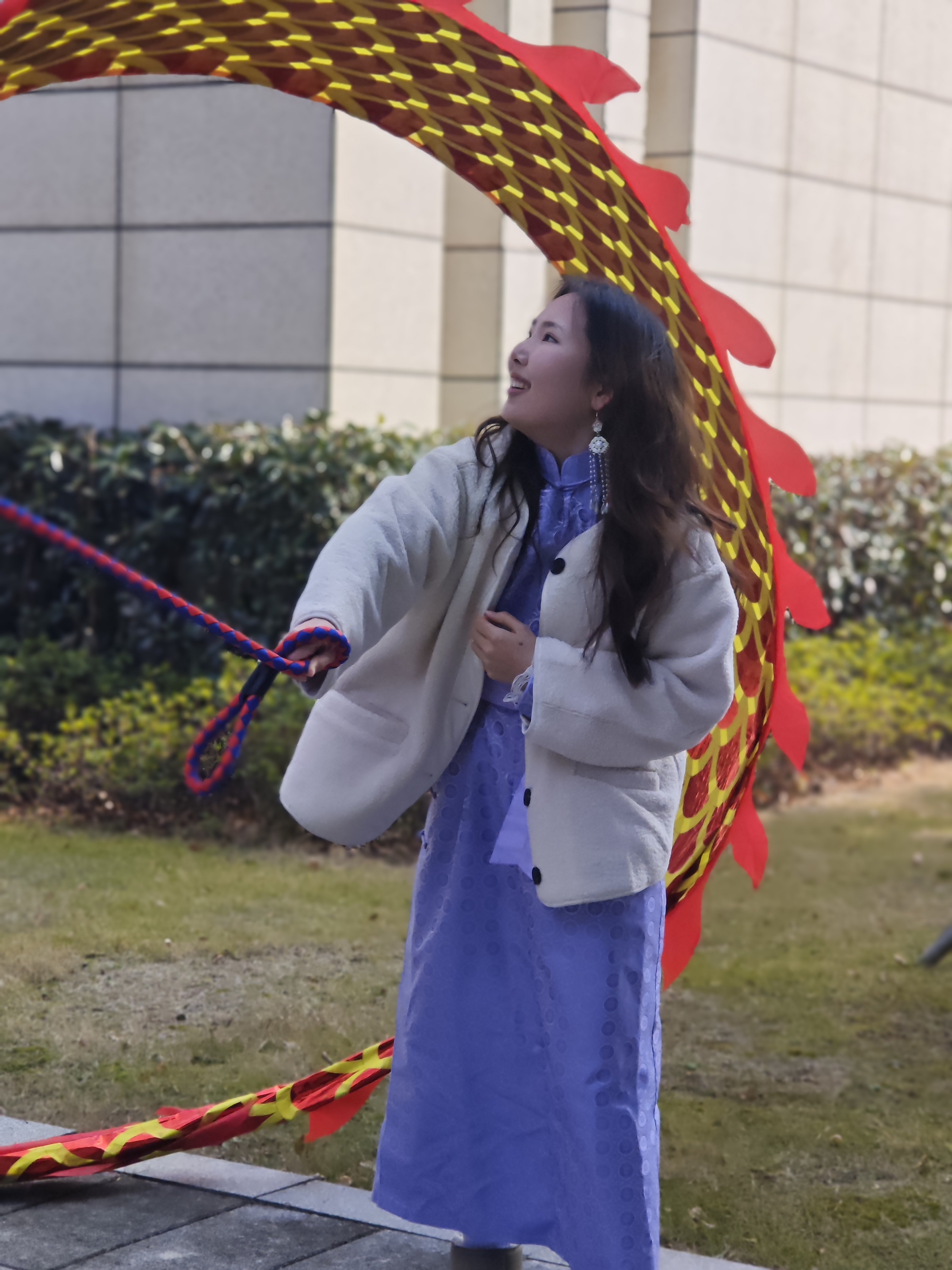 在南京行知苑文化交流中心 “小树林・文化角落” ,一场别开生面的非遗体验活动更是让大家直呼 “过瘾”。广场上,老师们现场展示舞龙旗,大家兴致勃勃地跟着舞动,彩带龙在手中翻飞盘旋,洋溢着青春活力。