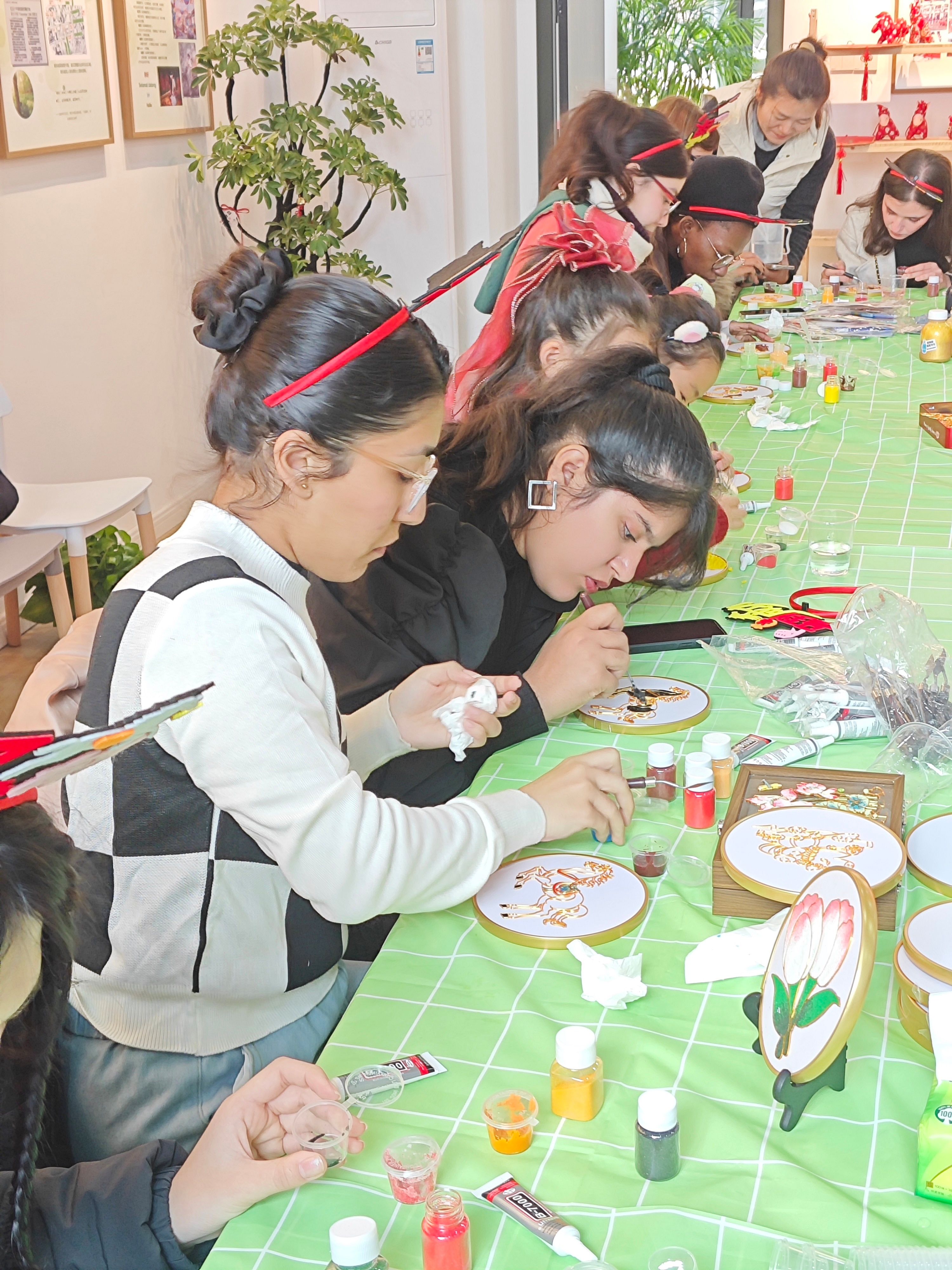 书法老师许磊现场挥毫,为大家书写满载新春祝福的 “福” 字。不少职工兴致盎然地亲手提笔,一笔一划认真临摹;还有同学请老师写下自己的名字和新春寄语,把专属的新春祝福珍藏起来。万马奔腾长卷、掐丝珐琅手作等体验项目也吸引了大伙的注意力,大家和画家高九凯等一起,共同绘制出一幅“万马奔腾” 主题长卷。笔墨挥洒间,形态各异的骏马跃然纸上,尽显龙马精神。