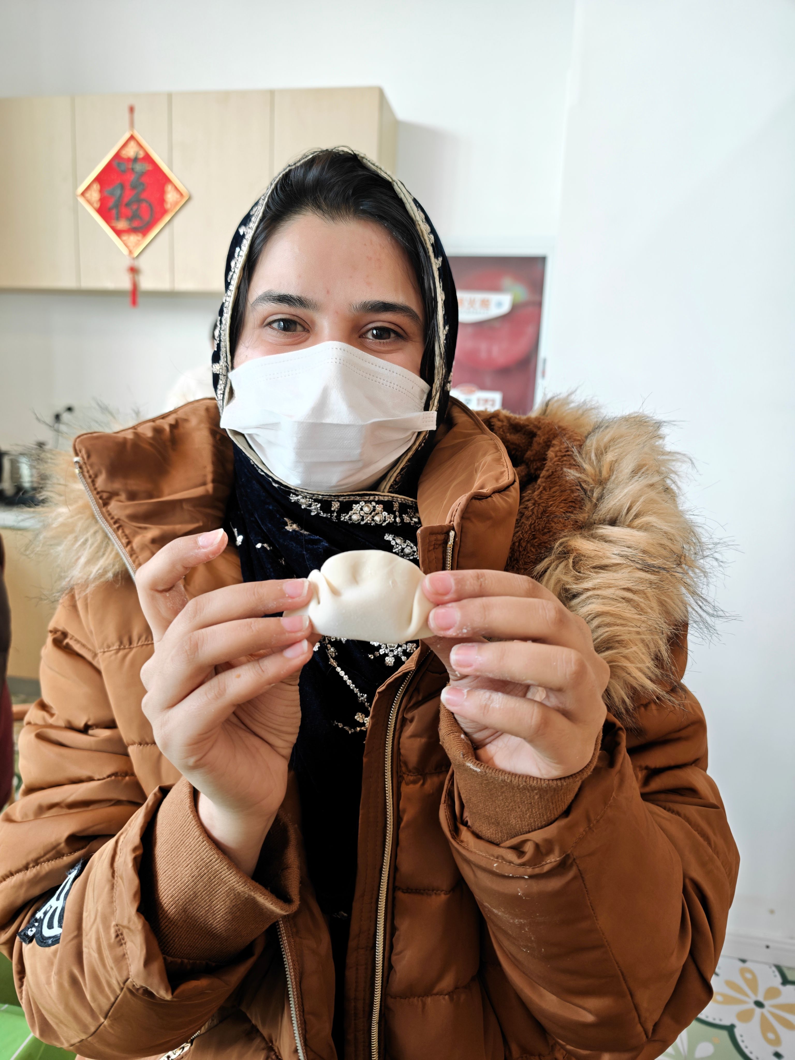 厨房里,师生围坐,跟厨师一起学习包饺子,了解中国的饺子文化。大家一道擀皮、填馅、捏褶,在欢声笑语中把跨越国界的情谊和对新春的祝福包进一个个形态各异的饺子里。大家边包边煮边吃,热腾腾的水饺下肚,暖意从舌尖蔓延到心间,也让职工们真切感受到中华文化里 “团圆” 的温暖内核。
